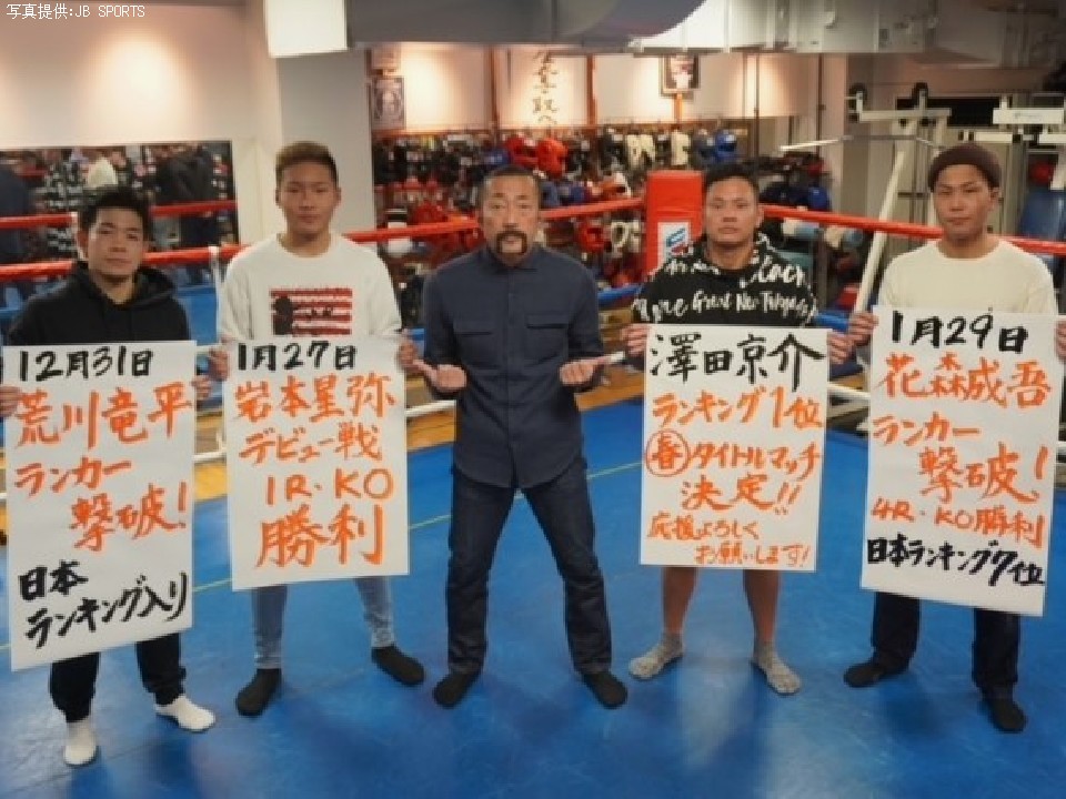 東京都足立区にあるJB SPORTSの勢いが止まらない。大晦日に荒川竜平(31)が判定勝ちで日本フライ級16位にランクされると、今年1月には花森成吾(22)がA級初戦で日本ランカーを撃破。最新ランキングで日本スーパーバンタム級7位に名を連ねた。