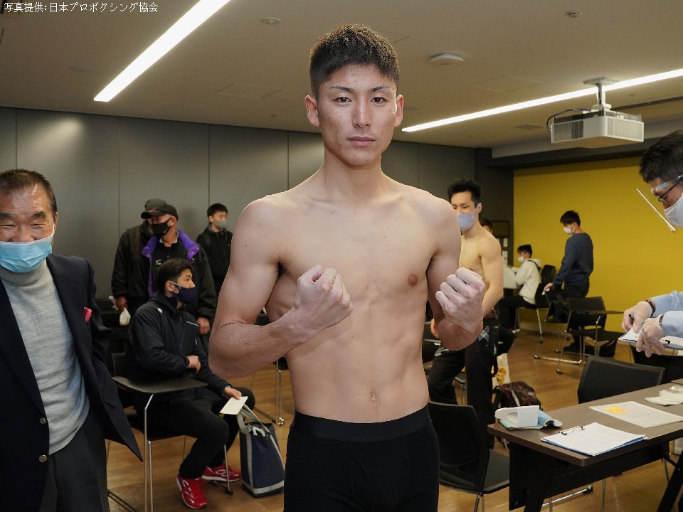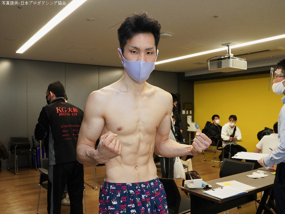 今回が3度目の新人王挑戦の矢斬は、100gアンダーの55.2kgでパスした。勝てば35年の歴史を持つ花形ジム初の全日本新人王誕生となる。矢斬は「相手はパンチが強くてまとまったボクシングをしている印象。福永選手のボクシングに付き合わず、サウスポーの利点を活かして自分のペースに引きずり込みたい」と意気込んだ。