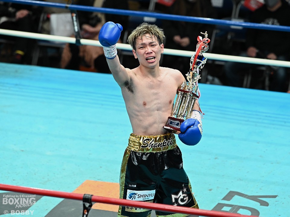 先に秤に乗った久保はリミットちょうどの52.1kgでパスした。久保は、昨年12月の東日本新人王決勝戦は逆転KO勝ちでMVPを獲得し、一躍注目された。久保の活躍に故郷の鹿児島県喜界島も大いに盛り上がりを見せている。