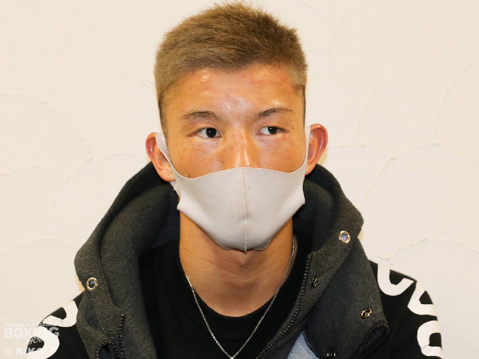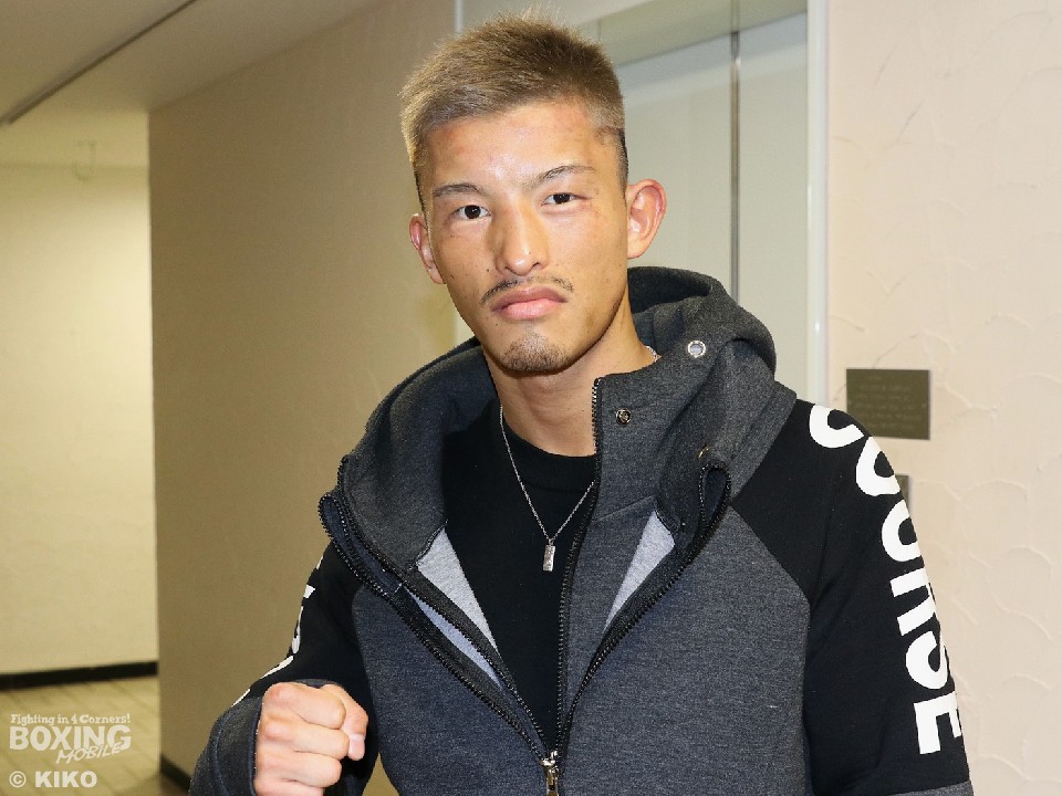 続けて「ジャブでペースを取れていると思ったが、5ラウンドが終わってからセコンドから『ポイントはイーブンか取られている』と言われて、前に出るしかないと思いボディから攻めた。前回(力石政法=緑)も同じような展開だったので、前戦の教訓を活かして試合の途中からでも戦い方を変えることができたのは収穫だった」と試合を振り返った。