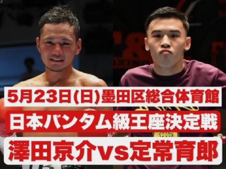 5月23日(日)は墨田区総合体育館で日本王座決定戦が行われる。14連勝中の澤田京介(33=JB SPORTS)と定常育郎(23=T&T)が10歳差対決としても注目を集めている。