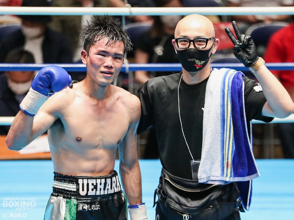 沖縄県でボクシングを始めた上原は、同郷で同級生のWBOアジアパシフィック・ミニマム級3位の川満俊輝(25)、全日本ライトフライ級新人王の狩俣綾汰(25)が所属している三迫ジムに移籍した。上原は「三迫ジムで厳しい練習をしているおかげで勝つことができた」と話すと、「清水さんに負けたのがOPBF王座戦だったので、リベンジの意味も込めてそこを狙っていきたい」と高みを目指す。