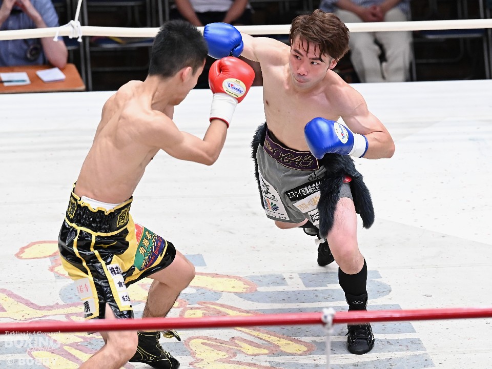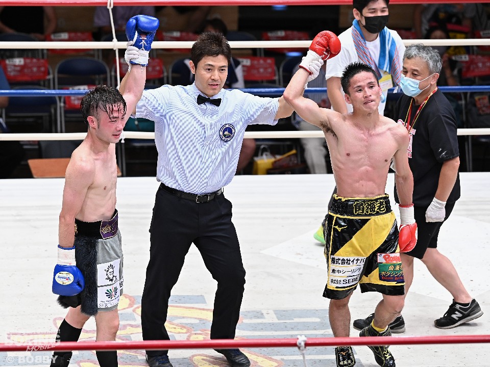 大保が右オーバーハンドを叩きつけると、中嶋は左で距離を測りながら左ボディを返して対抗。3回以降は接近戦でボディを叩き合い譲らず。6回、大保は右フックでグラつかせると連打で攻勢。中嶋はクリンチでピンチをしのぐと、左フックを決めて意地を見せた。中嶋はジャブからワンツーを決めるが、大保は打たれ強さを発揮して豊富な手数でペースを渡さず。最後まで意地のぶつかり合いが続いた。ジャッジに委ねられた採点は三者三様の引き分け。壮絶な打ち合いを見せた両者にこの日一番の拍手が送られた。