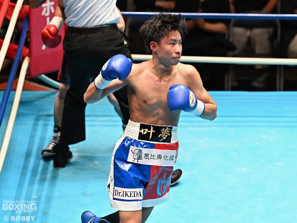 ライトフライ級4回戦では縄井愁(23=ワタナベ)と坂間叶夢(18=ワールドスポーツ)が拳を交えた。開始から坂間がジャブを軸に組み立てるとワンツーから返しの左フックでダウンをゲット。2回、坂間は被弾しながらも前に出る繩井に対し、左ボディでガードを下げさせると右ストレートから連打でレフェリーストップに持ち込んだ。