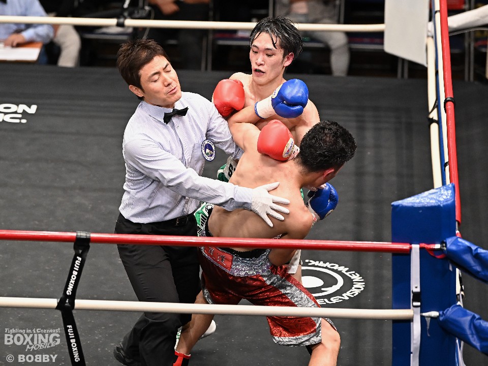 序盤から左を軸に丁寧な試合運びを見せた佐川が、最終ラウンドに仕留めた。佐川は小坂の右をブロックすると緩急をつけたパンチでペースを維持。中盤以降はジャブで顔を弾き、着実にダメージを与えた。8回、佐川は右アッパーから右ストレートでグラつかせてレフェリーストップに持ち込んだ。