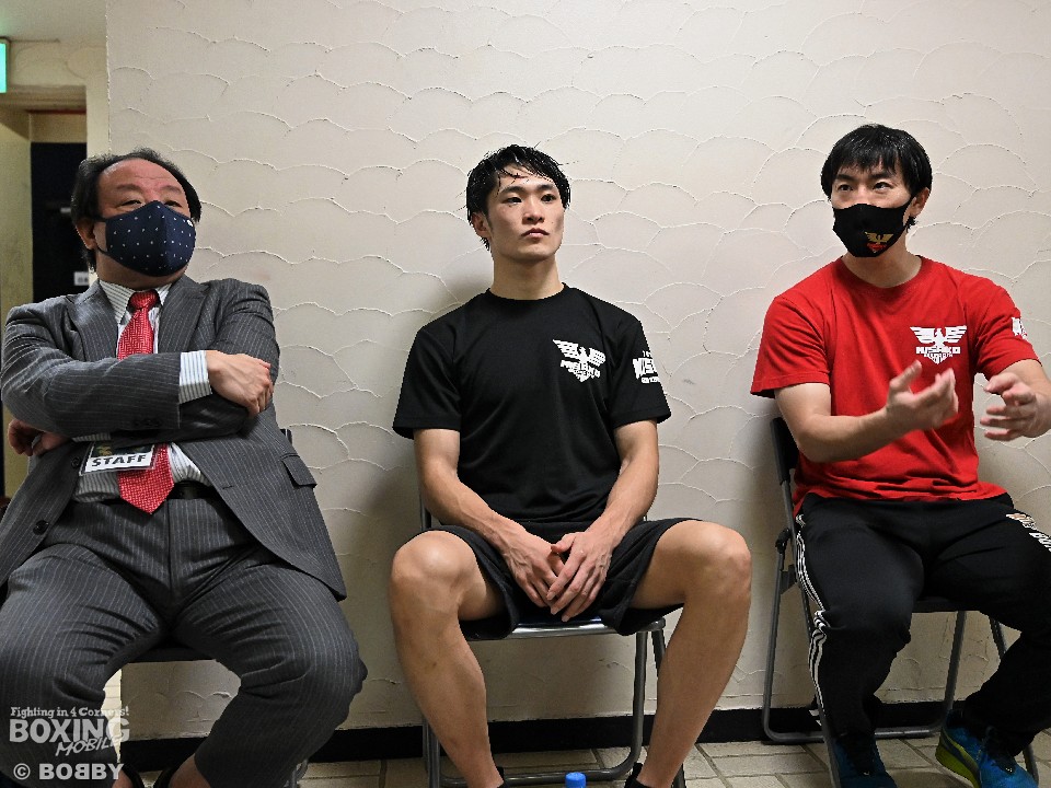 顔に傷一つなく会見に臨んだ佐川は「これまでは右に頼り過ぎていたので、左でペースを握ることがテーマだった。練習してきたガードしてからの左ボディ、左フックは少しは出せたと思う」。「後半、相手のペースが落ちてきたのと、自分の動きが良くなってきてセコンドの指示通りに動くことができた。打ち合いの中で危ないパンチをもらいそうになっていたのでそこを修正していきたい」と落ち着いた表情で試合を振り返った。