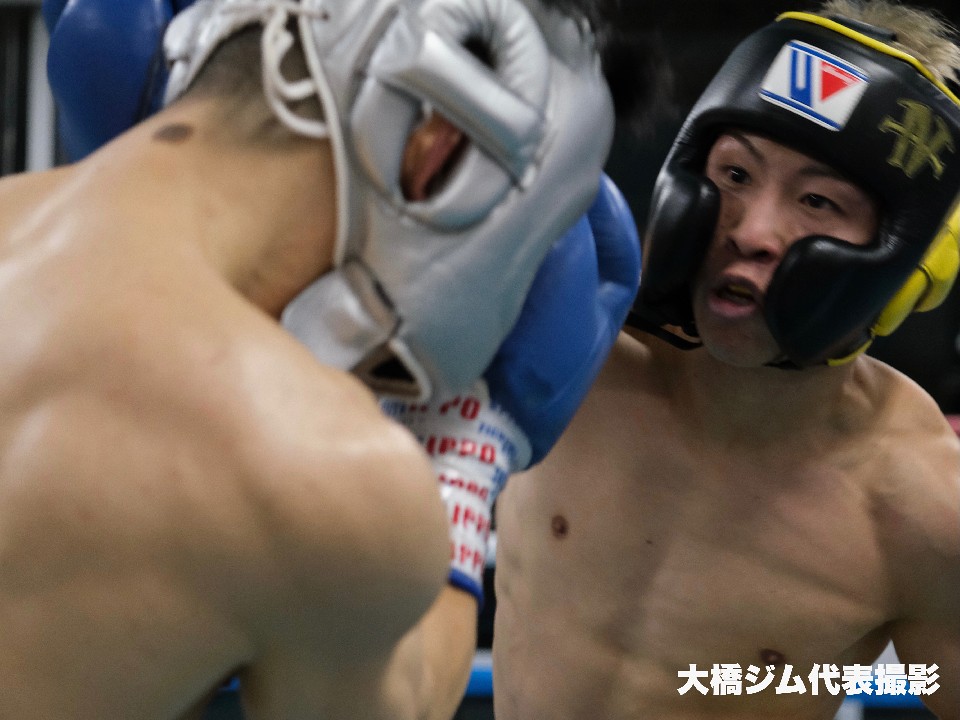 スパーリングで初顔合わせした井上と田中は、3分4ラウンドのスパーリングで汗を流しすと、井上は「やっぱりスピードが速いですね。やる前からそこは予想はしていたんですけど、自分が今までやった選手の中では一番速いと思います」と田中のスピードを評価。普段からスパーリングでは多用するというアッパーを打つ場面も多かった。モロニー戦の前に練習を重ねたというが、試合ではこれまであまり使ってこなかった。「左のトリプルは新井田(豊)さんを参考にしている。新井田さんの左アッパートリプルを見て、これいいなと思って。あのアッパーってフィジカルがしっかりしていないと3発打てないんですよ」と話すと、12月の試合ではアッパーカットを披露する可能性も示唆した。