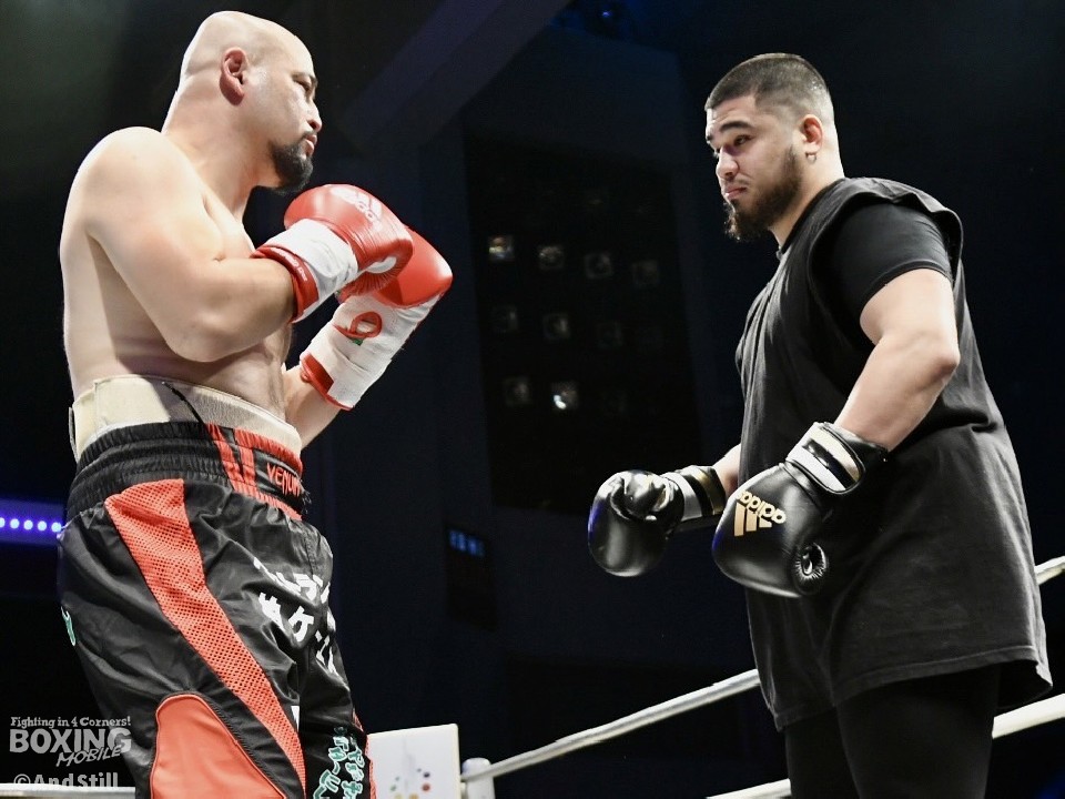 但馬は相手のコンビネーションをブロックすると、ボディを当てた。様子見を終えるとキレのあるジャブからラウンド終了間際にワンツーでグラつかせた。2回、但馬はロープに詰めて上下に打ち分けて攻勢。レフェリーが一度ストップすると再開後、左ボディを決めたところでレフェリーが割って入り4ラウンド予定のスパーリングは2ラウンドで終了となった。