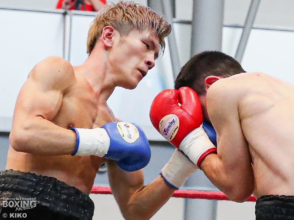 中日本ボクシング協会主催の「STEP UP BOXING」が19日、愛知県刈谷市あいおいホールで行われ、メインイベントでは54.5kg契約4回戦、菅原健太(30=名古屋大橋)と中里祐也(32=鈴鹿ニイミ)が拳を交えた。
