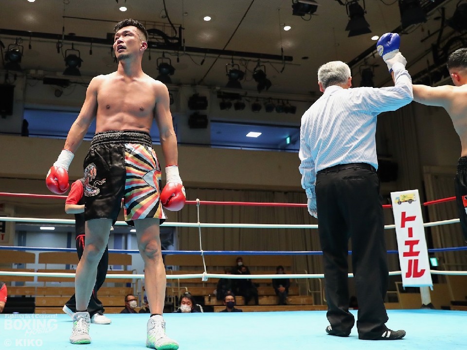 初回に右フックを浴びてダウンを喫した高橋だが、2回になるとジャブからワンツーを好打し反撃。続く回も手数が減った池谷を攻め立てポイントを挽回した。最終4回、お互いに疲労困憊の中、池谷が押し込みジャッジに攻勢をアピールした。高橋は1ポイント差で涙を呑んだ。