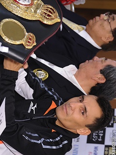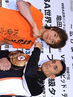 31日に日本武道館で開催される"WBA世界バンタム級・スーパーフライ級ダブルタイトルマッチ"の調印式が29日、都内で執り行われた。