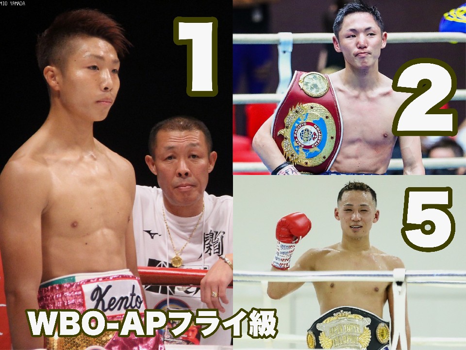 世界挑戦が決まった山内涼太(27=角海老宝石)が3月3日付で王座を返上したのに伴い、王座空位となったフライ級は、1位の畑中建人(23=畑中)が最上位。WBO-APライトフライ級王座を返上した加納陸(24=大成)が2位にランクイン。5位には、今月19日に次戦を迎える、日本ユース王者の井上夕雅(22=真正)が入った。