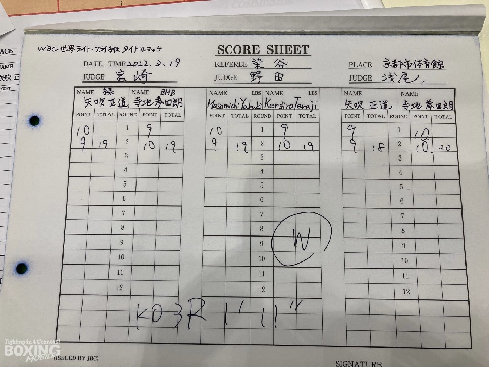 WBC(世界ボクシング評議会)世界ライトフライ級タイトルマッチが19日、京都市体育館で開催された。初防衛戦に臨んだチャンピオンの矢吹正道(29=緑)と、昨年より9月に矢吹に王座を明け渡し、世界王座連続防衛記録が「8」でストップした前チャンピオンの寺地拳四朗(30=BMB)のダイレクトリターンマッチ。静まり返った会場に、試合開始のゴングが鳴り響いた。