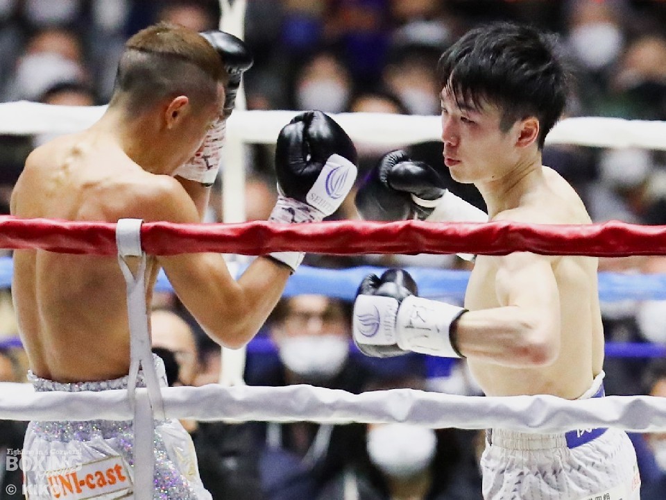 昨年9月の対戦では、拳四朗の生命線の”ジャブ”は「強弱2種類ある」と分析し、試合の組み立てを図った矢吹正道(30=緑)に王座を明け渡したが、昨日は、その裏をかいて、ジャブをセーブし、ガードを高く上げて、左ボディを軸にグイグイとプレスをかけた。