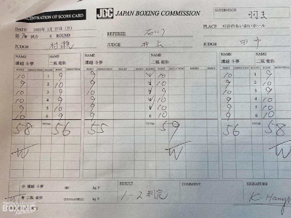 昨年6月以来の再起戦に臨んだ溝越が、復活をアピールしたのか? それとも福島県郡山市から参戦した二瓶が勝ったのかーー。