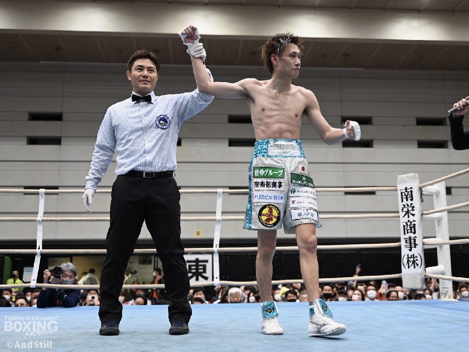 世界だけを見ている石田匠の復帰戦。フェザー級のリングにも上がった経験のあるカルロのプレスにも下がらず冷静に試合を進めた石田が、8ラウンドに左ボディからパンチをまとめてダウンを奪うと、コーナーに追い込んで、2018年7月29日以来のTKO決着で完全復活をアピール。世界への弾みをつけた。