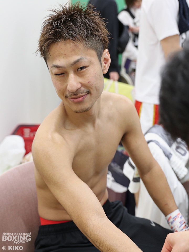 「(菅原選手は)距離が遠いと思っていたが、思ったよりは遠くなかった」と印象を語った。最初のダウンの左フックは「ずっと練習していた。しっかりと当たった」と手応えを感じた一撃で、最後に決めた左フックは「揉み合いの中でも負けないフィジカルを作ってきたので、その中で出せた」と納得の表情を見せた。
