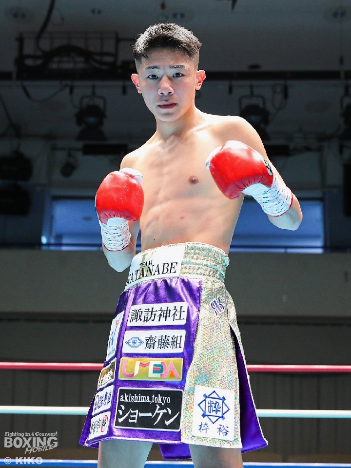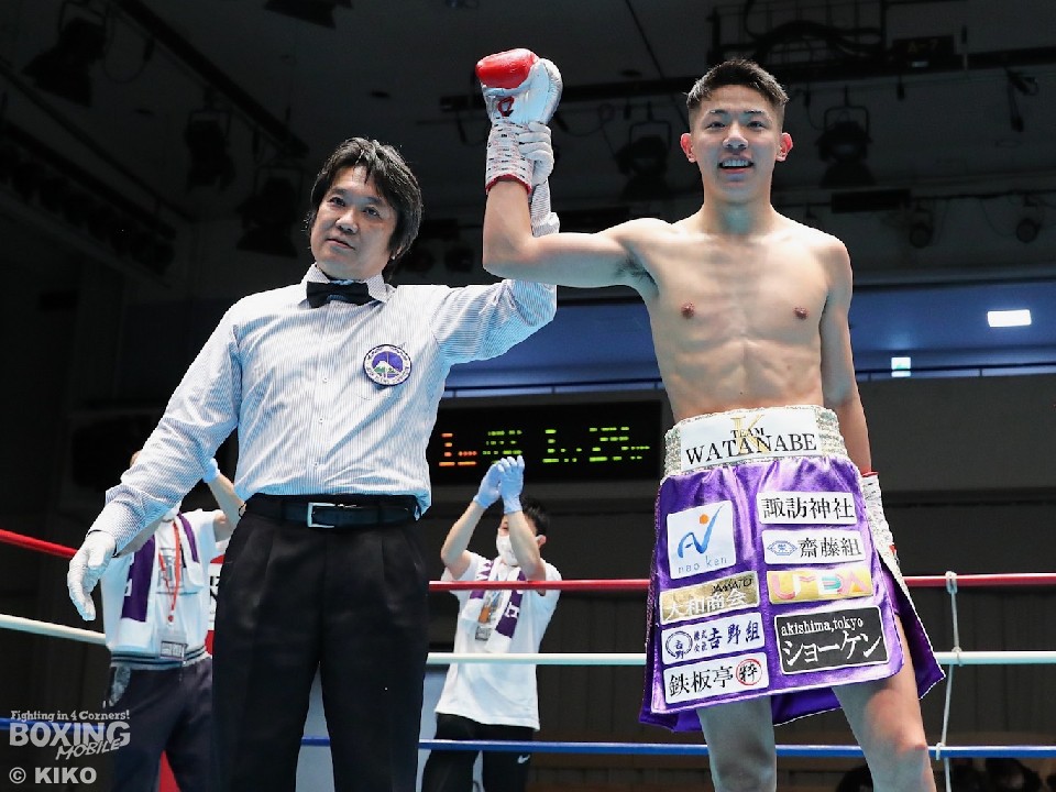 東日本新人王決勝戦を初回10秒TKO勝ちでMVPを獲得した渡邊が、またも速攻劇を演じた。ジャブからワンツーを好打しグラつかせると、一気に勝負に出て怒涛の連打でレフェリーストップに持ち込んだ。