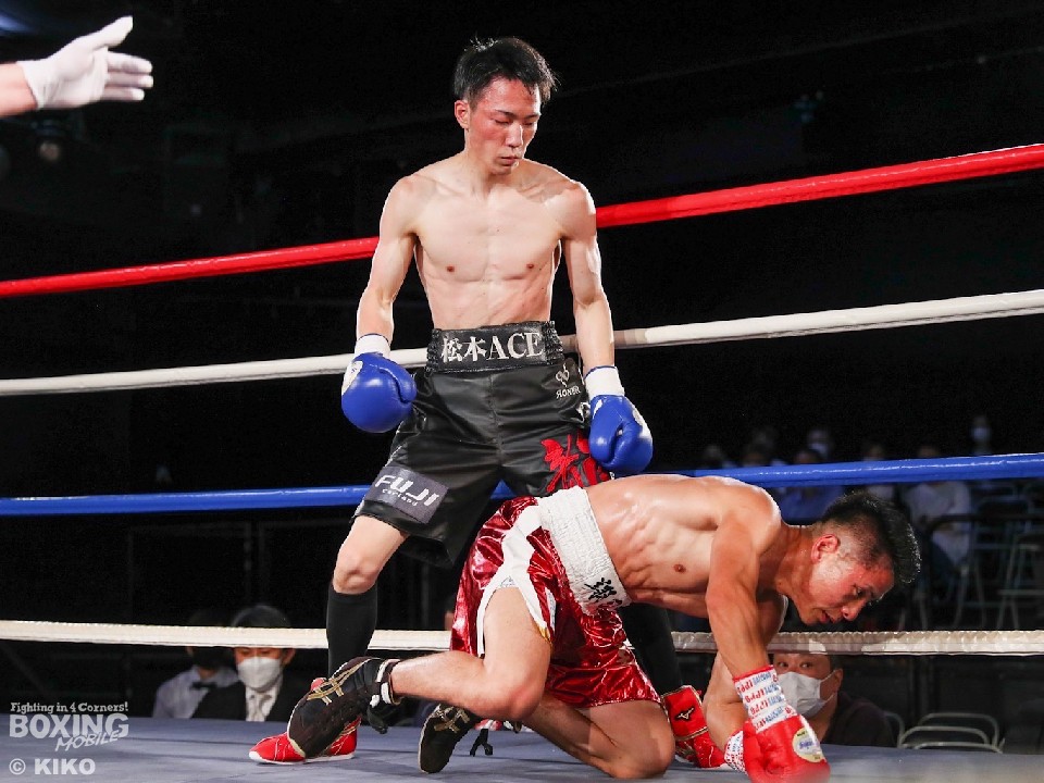 距離を詰めてくる松本に対し、打ち終わりを狙った高熊は右ストレートでダウンを演出。勝負が決まったのは2回。高熊は同じようなタイミングの右ストレートで、松本を倒すと最後はジャブで顔を弾き、レフェリーストップに持ち込んだ。