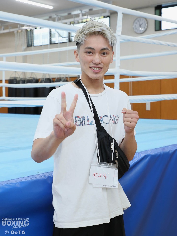 SAGAサンライズパークで開催された「西部日本新人王決勝戦」(6月5日)に、2021年度新人王スーパーフェザー級西軍代表の山名生竜(20=HKスポーツ)が観戦に来ていた。
