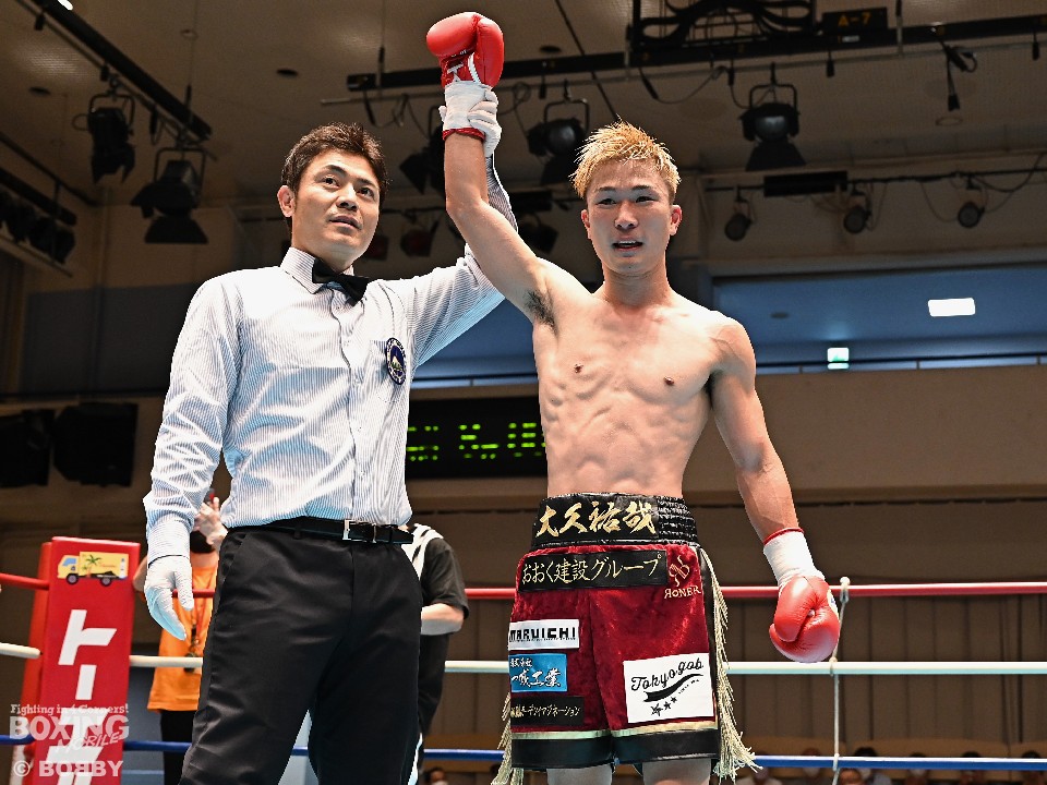 中央大学ボクシング部出身の大久は、アマチュア40戦24勝(6RSC)16敗を経て、昨年7月にデビュー。プロの階段を着実に登っている。大久は「新人王に勝ったことは自信になるが、まだまだこれから。日本ランカーに挑戦したい」と飛躍を誓った。