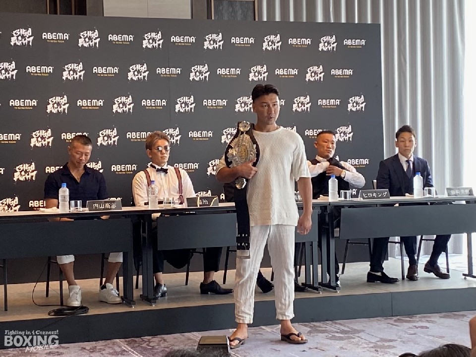 会見に同席した元WBA世界スーパーフェザー級スーパーチャンピオンの内山高志氏を『アニキ』と慕う皇治選手は、「アニキとやりたい」と指名し、内山氏も、「やりたいんだったら全然いいよ」と答えたが、「でも、オレとやったらお前の打たれ強さの価値がなくなるから」とレジェンドは、笑顔でたしなめた。