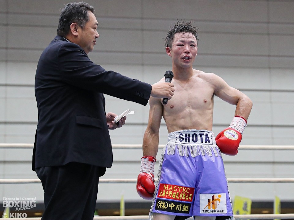 「相手の左ボディに左フックを合わせる練習をしてきたが、上手くハマった。ダウンを奪ったパンチは、スイッチしての左フックで、自然と出たパンチ」と胸を張った。
