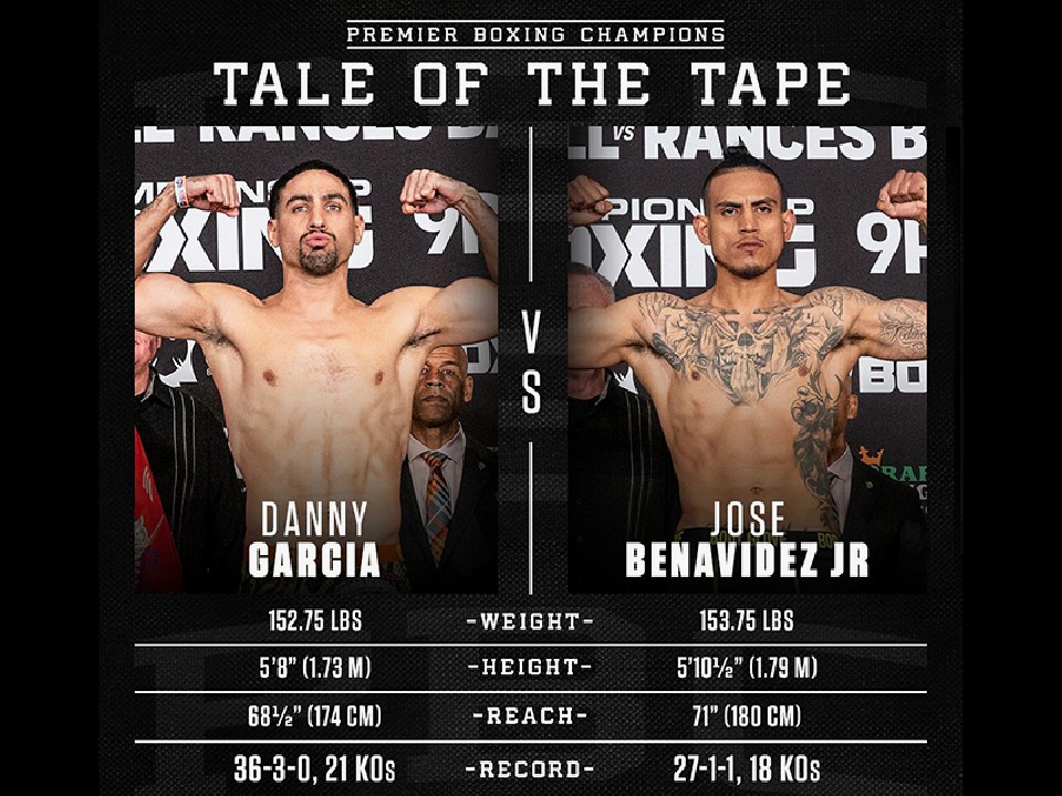 スーパーウェルター級リミット69.8kgを、ガルシアは600g少ない69.2kgでパス。ベナビデスは、100gアンダーの69.7kgで秤を降りた。