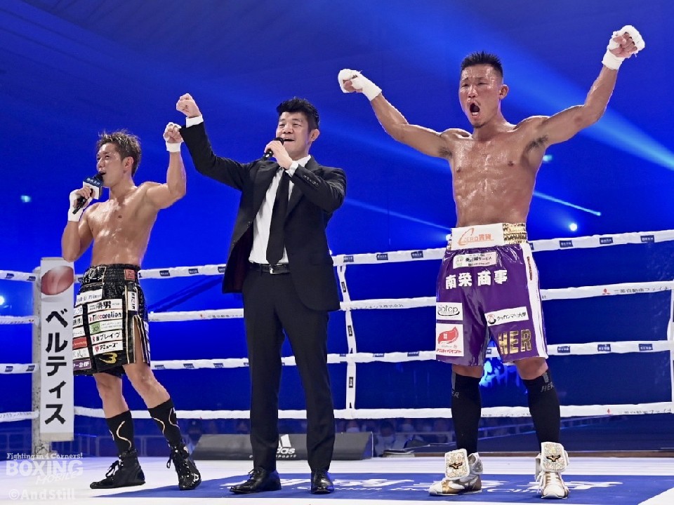 「皇治」コールと「ヒロキング」コールが沸き起こる中、皇治がジャブを飛ばす中、ヒロキングは左フックを返した。2回、ヒロキングが左ボディを突き刺せば、皇治も右アッパーを返して応戦。ヒロキングは、左フックを叩きつけると、左右フックを繰り出した。3回、両者とも真っ向から打ち合い、意地の張り合いは最後まで続いた。