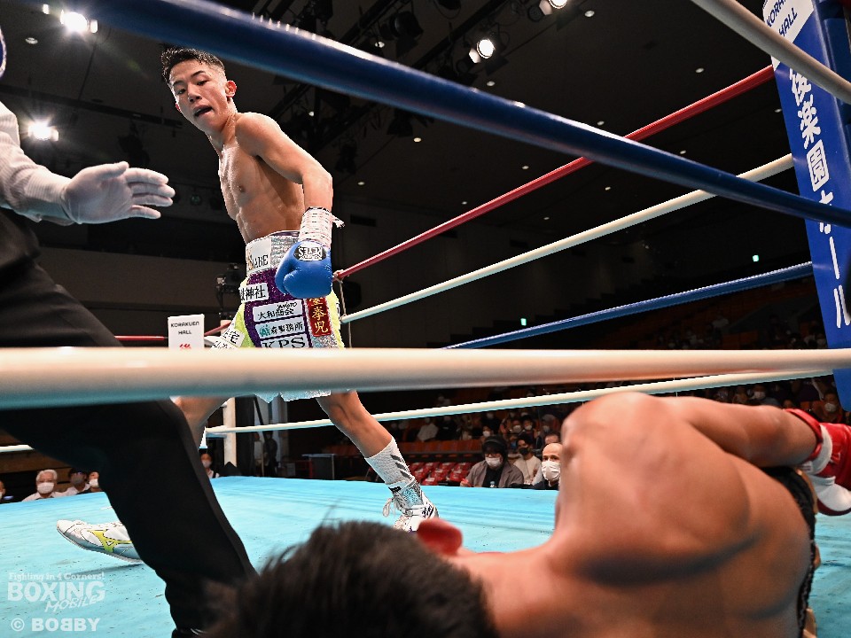 渡邊がサークリングしながら左フックを狙うが、サウスポーのスリカオは左を強振。3回、渡邊は連打から右ボディアッパーでダウンを奪うと、4回にコーナーに詰めて、右アッパーで豪快に倒した。