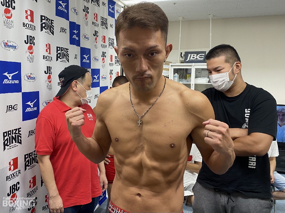 ダイナミックグローブのメインイベントで、55.8kg契約10回戦のリングに上がる赤穂亮(36=横浜光)が2日、都内のJBC(日本ボクシングコミッション)事務局で、対戦相手のエドリン・ダプドン(36=比)と揃って前日計量を終えた。