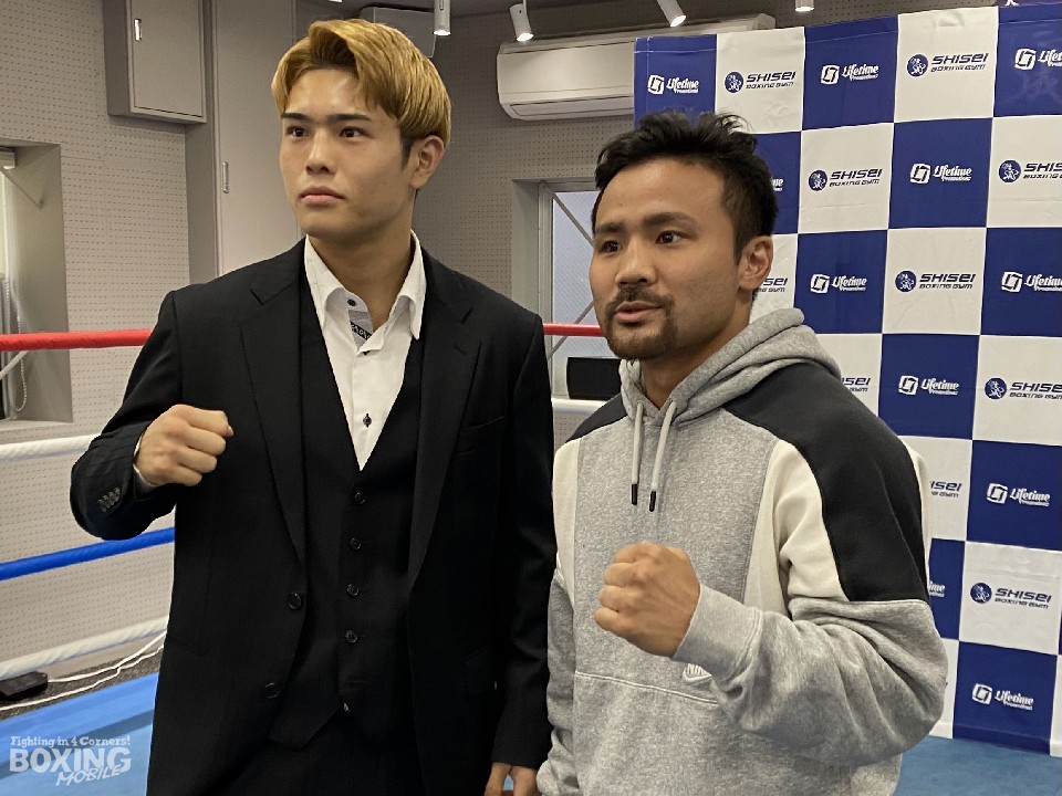 会見が終わると、佐々木らが出場する11月15日のメインイベントに出場する元世界チャンピオンの比嘉大吾(志成)も駆けつけ、ツーショット写真に収まった。