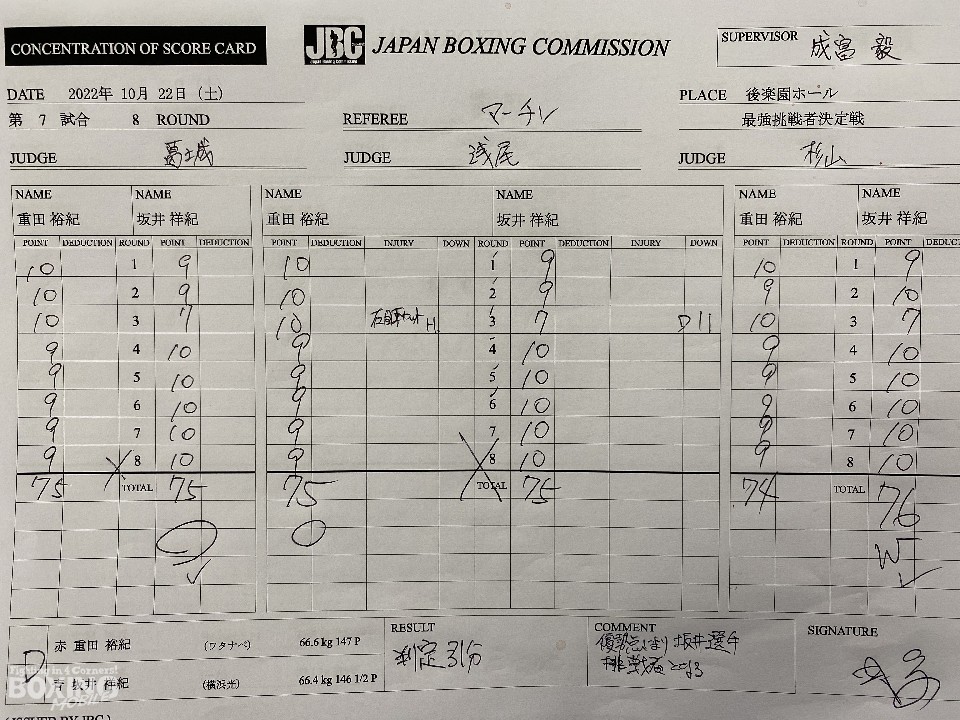 日本ウェルター級挑戦者決定戦、同級1位の重田裕紀(31=ワタナベ)対同級2位の坂井祥紀(31=横浜光)が22日、後楽園ホールで開催された「A-SIGN BOXING&DANGAN253」で行われた。
