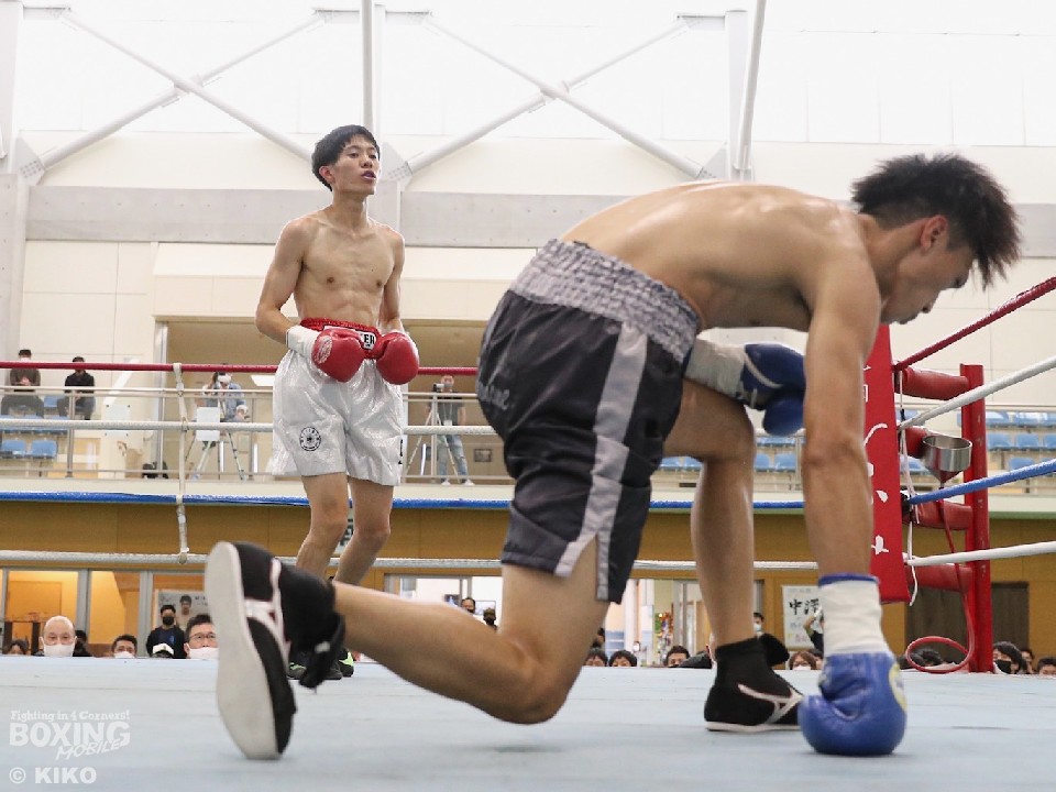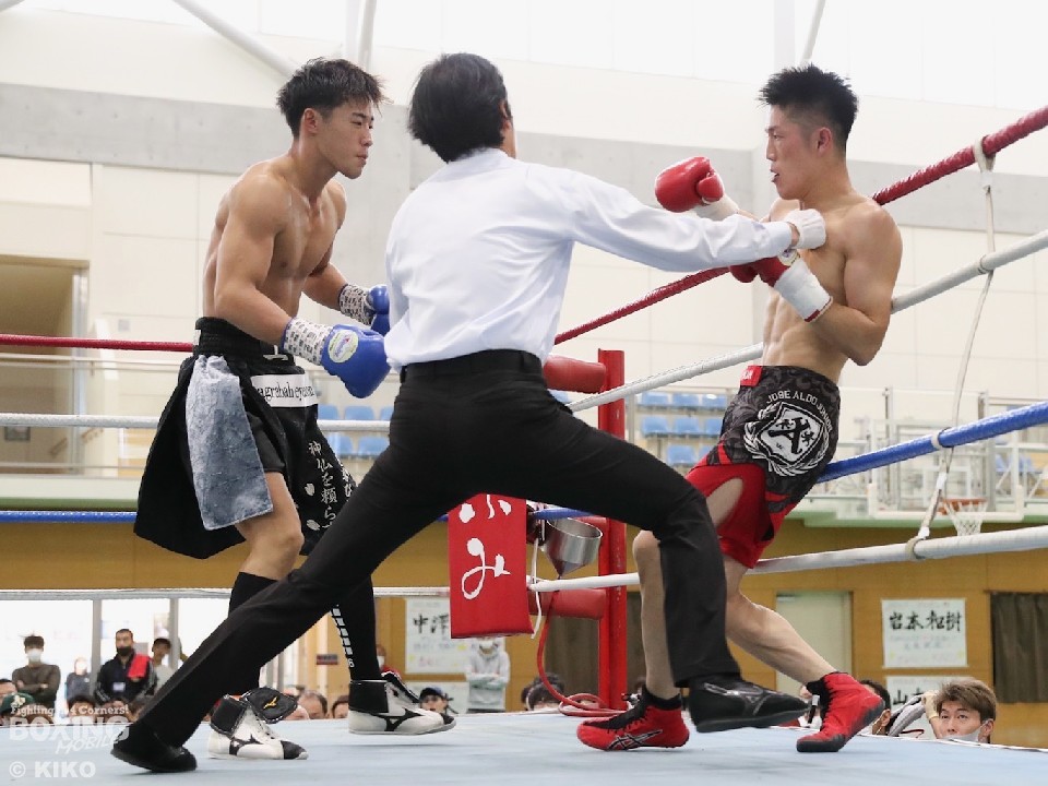 第1試合バンタム級4回戦では、岩本和樹(21=西遠)と松原靖貴(24=トコナメ)が対戦した。初回、サウスポー岩本が右フックでダウンを奪う、絶好のスタート。その後も有効打で上回ったが、3回に松原の反撃を受けて失速。4回も苦しい展開となったが、懸命に打ち返した。
