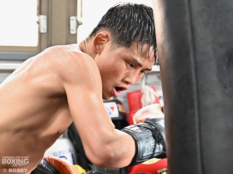 会見後には、シャドーボクシング、ミット打ち、サンドバッグ打ちを披露。ミットは小口トレーナーと小林トレーナーがそれぞれ持ち、リズムよくコンビネーションを叩き込んでいた。時折、笑顔を見せるなど緊張感の中にも、順調な調整であることをうかがわせた。