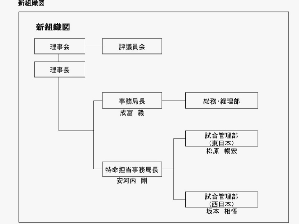 2 特命担当事務局長の新設 ・総務、人事、財務を主に担当する事務局長に加え、主に試合管理業務全般、財務再建、