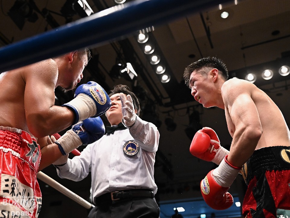 スーパーフライ級8回戦では、元日本フライ級王者で日本スーパーフライ級8位の粉川拓也(37=角海老宝石)と元日本ランカーの青山功(33=セレス)が激突。初回、青山が右アッパーでダウンを奪う絶好のスタート。粉川は、クリンチで窮地を脱した。その後も青山は気迫あふれるファイトを見せると、4回に右フックでダウンを追加。5回にパンチを畳みかけて、レフェリーストップに持ち込んだ。