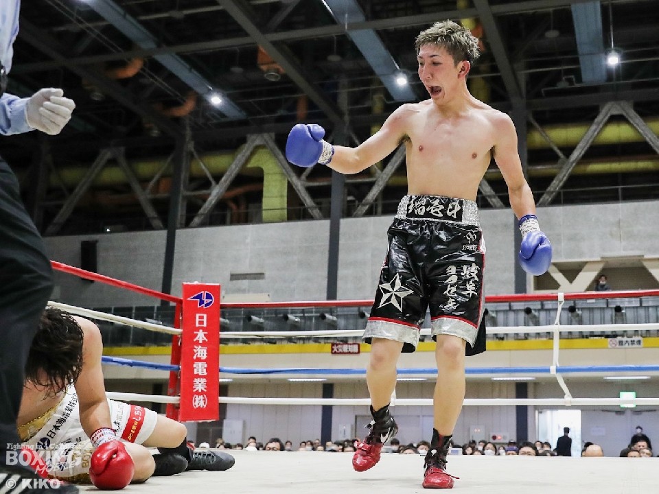最初にダウンを奪ったのは長谷。接近戦で左フックを合わせた。「オーバーを狙っていたら入った」と左の感触を振り返った長谷だが、「ガードが下がってしまった。手数も少なかったし、プレッシャーをかけていきたかった」と反省の弁が口をついた。