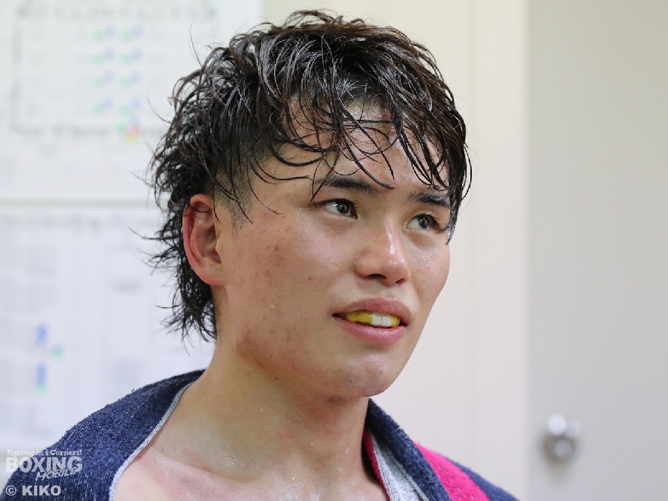 ダウンを奪われたシーンに関して「効いてました。でも、気持ちだけでいきました」とホッとした胸の内を吐露。「ジャブを練習してきたので、それが生きた」と振り返ると、「ダウンを奪ったのは、狙ってたパンチではないので、実感がない」と打ち下ろした右ストレートは、流れの中で出だものだったことを明かした。
