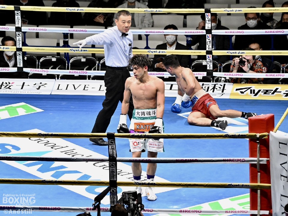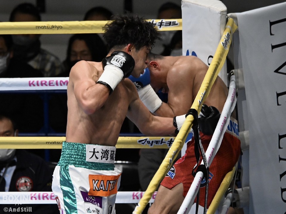 試合を終えた大湾は「相手を舐めて集中せず、見るべきとこを見ずに、自分のしたいことだけをしてしまった」と反省の弁から始まった試合後会見で、「2Rのスリップ判定は、立ち上がった時に少し効いてることに気づいた。10秒くらいで回復したから焦りはなかった。正直、ダウンするほど、試合で効いたのは初めて」と試合の序盤を振り返った。