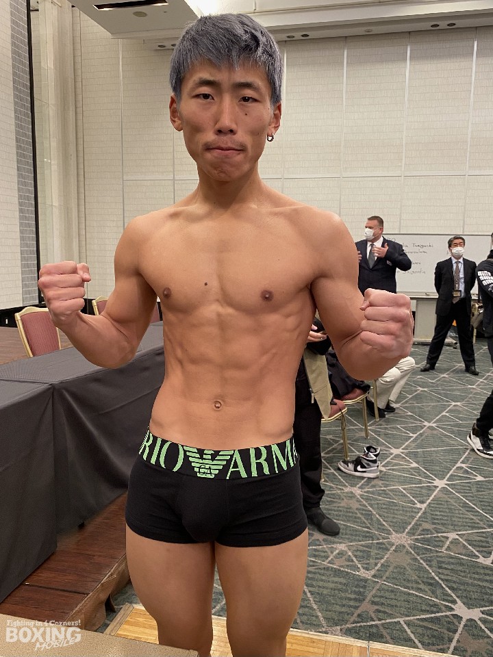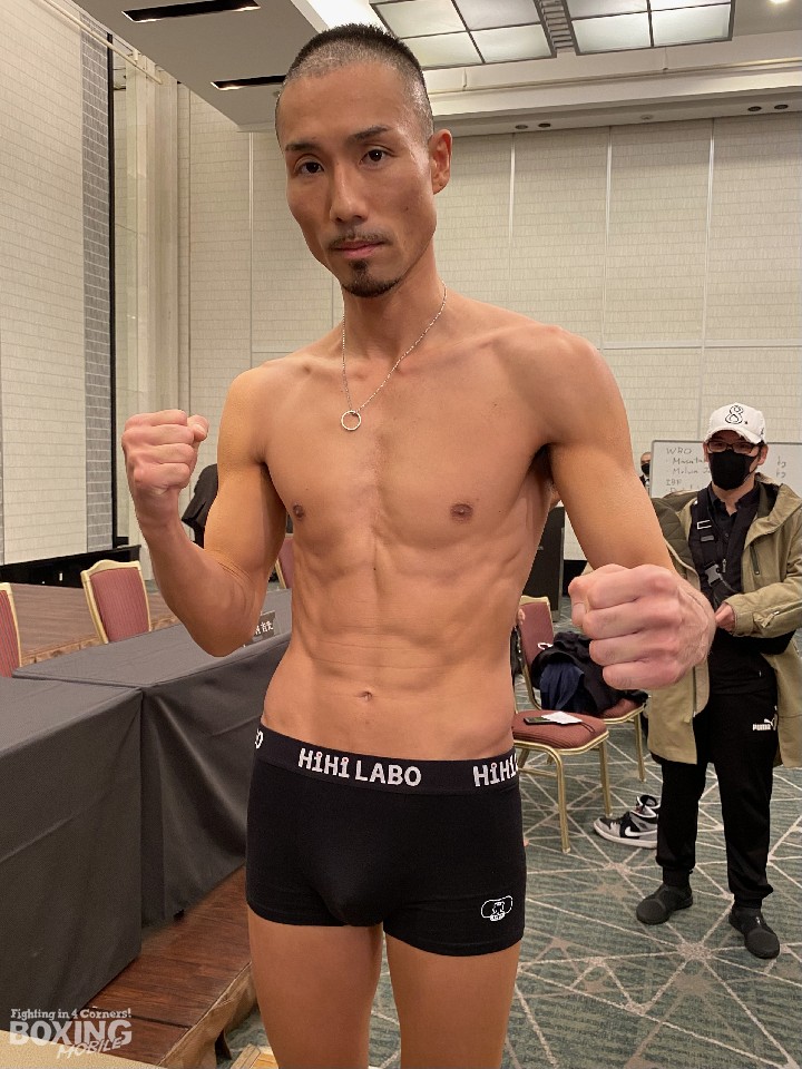 奈良井は、昨年9月の日本王座戦以来の再起戦となる。スーパーフェザー級リミットを200g下回る58.7sでクリアした。「自分の力を100%出して、一番面白い試合を見せる」と言葉に力を込めた。