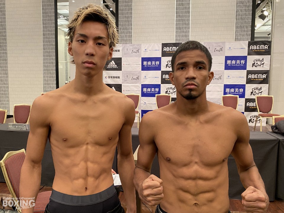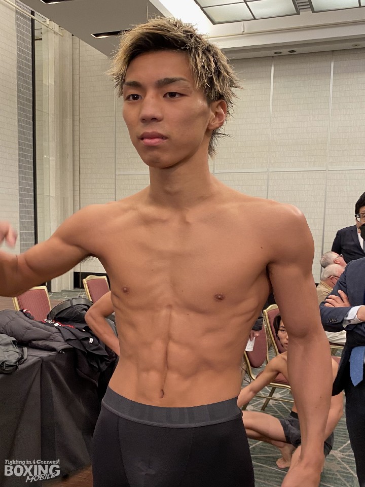 メキシコ逆輸入ボクサー花田歩夢(20=神拳阪神)は、フライ級8回戦でWBC世界ライトフライ級4位のアサエル・ビリャル(28=パナマ)と拳を交える。花田は、フライ級リミットを500g下回る50.3s、ビリャルは、1sアンダーの49.8sで計量を終えた。