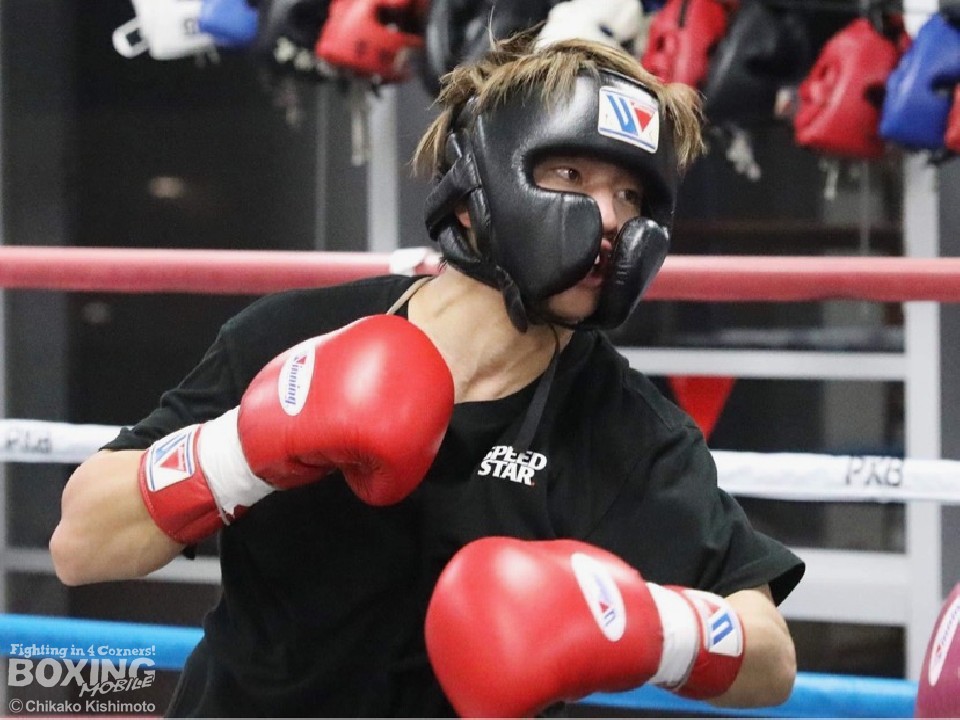 「細かいパンチをもらってしまうところがあるので気をつけていきたい。そして、チャンスに攻め切る嗅覚、攻撃力を強化していく」。アマチュア選手とのスパーリングでは、相手のパンチをブロックとステップワークでかわすと、鋭い踏み込みからダイナミックなパンチを打ち込み、これまで見たことのない攻撃を試していた。