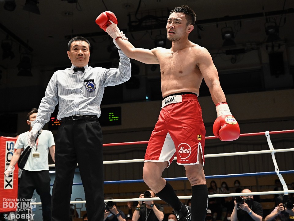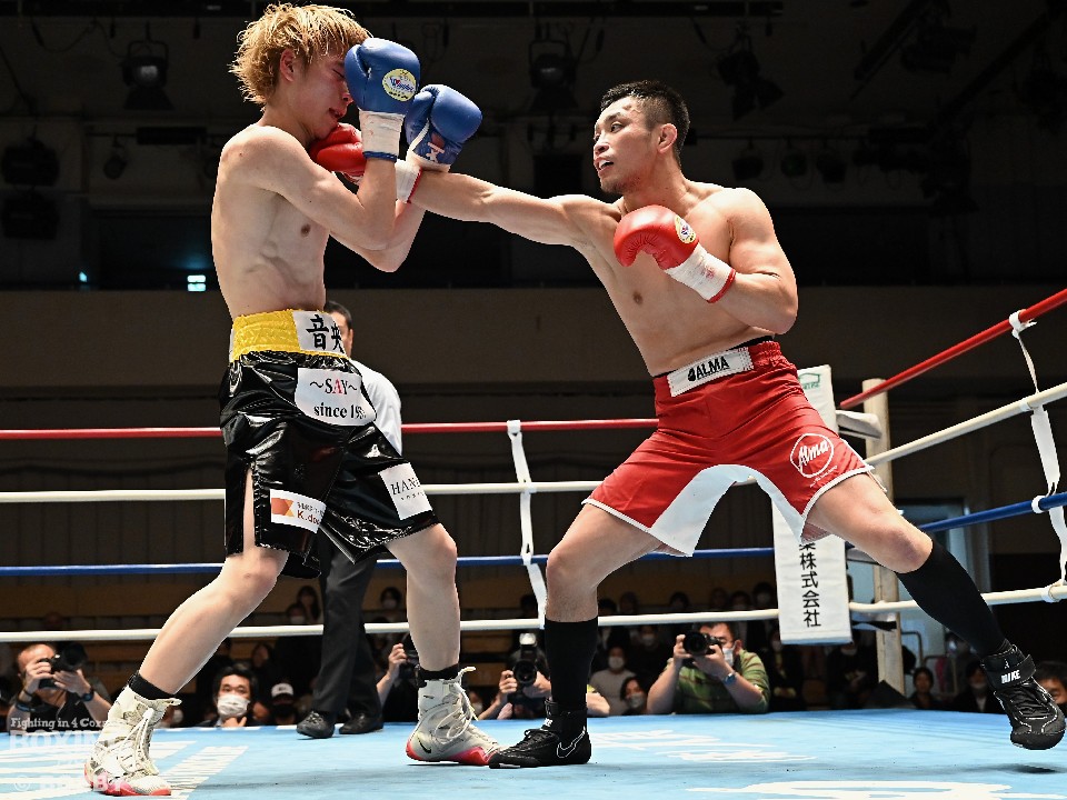 開始10秒、菊池が左フックでダウンを奪う絶好のスタートを切った。しかし、2回からサウスポー新村がプレスをかけて、左ストレートを好打。ワンツーを軸に、積極的な攻撃を見せた。勝負を決めたい菊池だが、パンチの振りが大きくなり、スタミナを消耗。最終4回も、新村が左ストレートで顔を弾き、ジャッジに攻勢をアピールした。ダウンを挽回した新村が逆転勝ちした。
