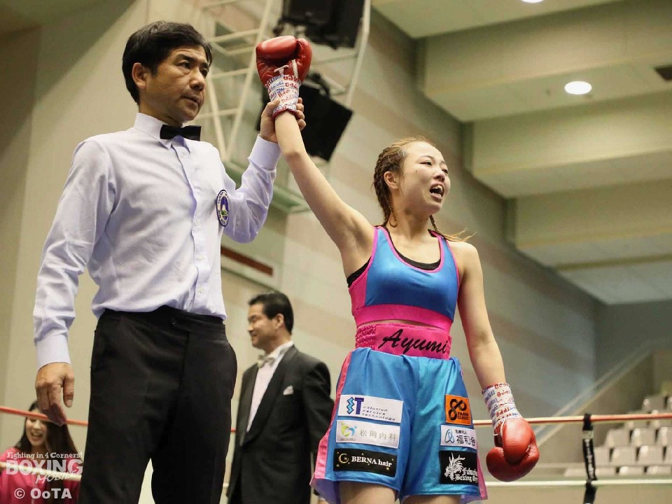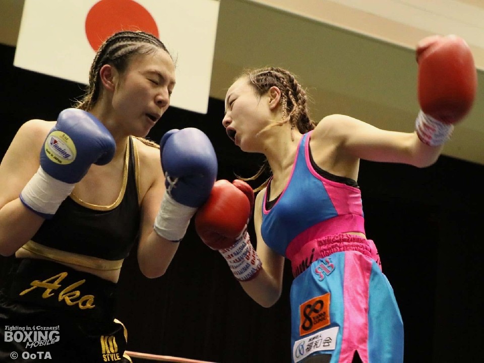 FUKUOKA ボクシングジム主催の「REAL SOUL BOXING.62」が19日、福岡・宗像ユリックスで開催され、全8試合で熱戦が繰り広げられた。メインイベントの女子アトム級4回戦では、田中歩未(21=FUKUOKA )と中村吾子(27=関)が拳を交えた。