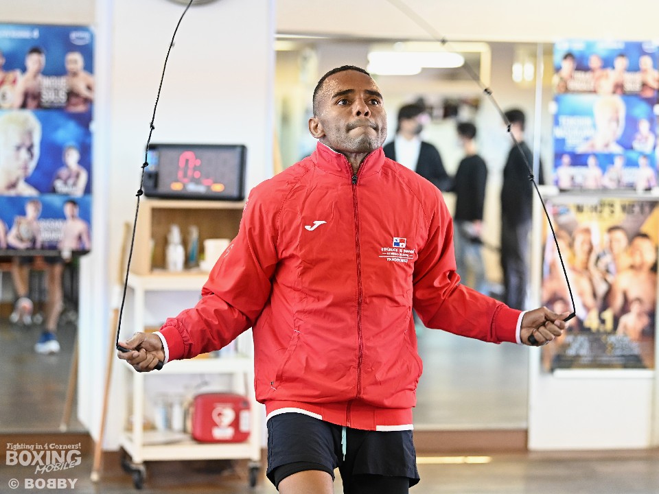 練習前の取材に応じたソリスは「試合の知らせを待っていたら、拓真選手に決まった。ニュースを受け取った時は、感動して嬉しかった」と切り出すと、「印象としては普通。パナマでも日本でも、最高の選手と戦ってきたので、印象は気にしない。コンディションは100%。拓真をリスペクトしているが、警戒する点は特にない。判定までいく準備をしてきた。勝つための準備をしてきた」と静かに語り、山中慎介戦で来日した7年の間に成長したポイントに「忍耐」をあげた。