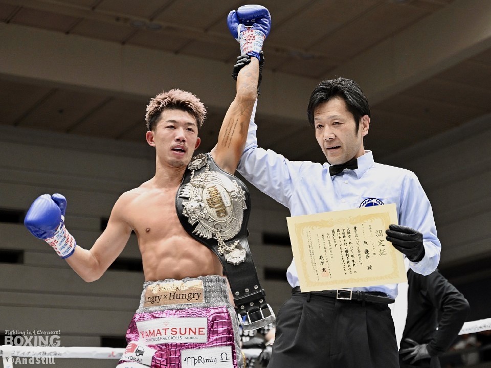 チャンピオンの入れ替わりがあったのは、スーパーフェザー級。指名挑戦者の原優奈(28=真正)が、チャンピオンの坂晃典(31=仲里)からダウンを奪い返して逆転勝利。原優奈が新チャンピオンの座に就いた。