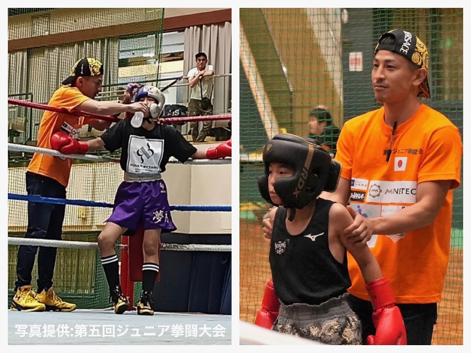 前WBC(世界ボクシング評議会)世界ライトフライ級チャンピオンの矢吹正道(緑)が主催するキッズ達のスパーリング大会「第五回ジュニア拳闘大会」が5日、大府市民体育館で行われた。今年は、44人のキッズボクサー達が参加。プロ仕様のリングが用意され、プロのアナウンサーがキッズ達をコールした。注目の矢吹と名古屋大橋ジムの大橋弘政会長の長男対決は、矢吹家に軍配が挙がったとの報告もあった。