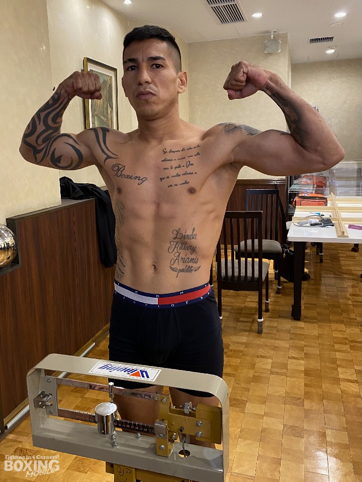 日本のリングに上がるのは、約6年5ヶ月ぶりのカリージョは、100gアンダーの52.5kgでパスした。「(田中は)速くて強いが、明日はベストを尽くす」と意気込んだ。