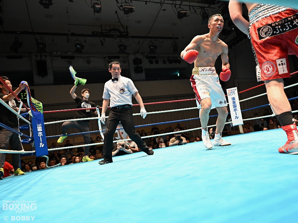 途中から、突き上げるようなショートアッパーが冴えわたった。このパンチは同門でWBO世界スーパーフライ級王者の中谷潤人(25)が得意とするパンチの一つで、中谷とのスパーリングで実際に浴びて、取り入れたという。